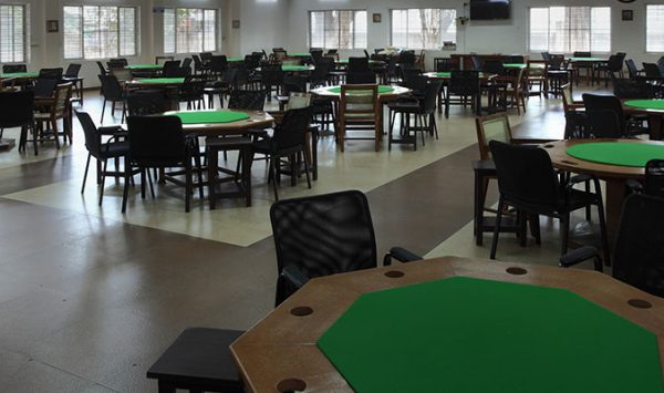 With an attached Bar, our card room equipped with twenty-two tables and two televisions offers a luxurious gaming experience to the members. the room can easily accommodate 100-150 members at the same time.